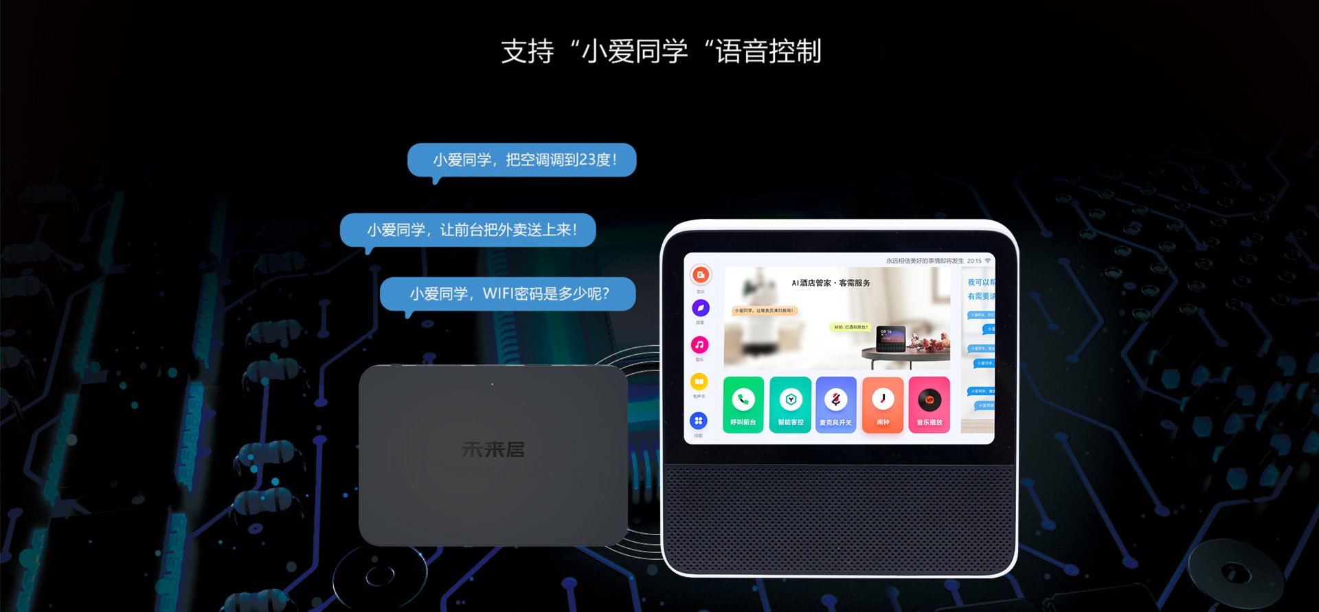 客房控制中心, 采用485串口通讯协议,通过云端服务器实现对客房内 灯光、窗 帘、空调等设备及场景的智能控制,该产品亦可设置为本地 联动模式,拥有2路485,4路干接点输入,一路IR